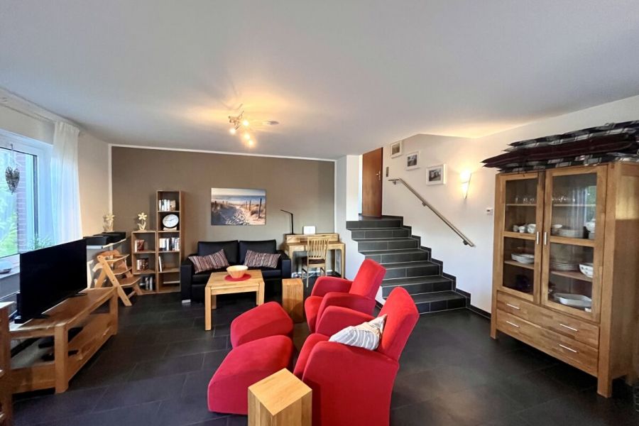 Das Ferienhaus „Canis“ ist eine Doppelhaushälfte mit ca. 85 m² Wohnfläche. Das Erdgeschoss ist wie folgt aufgeteilt: offener Wohn- und …