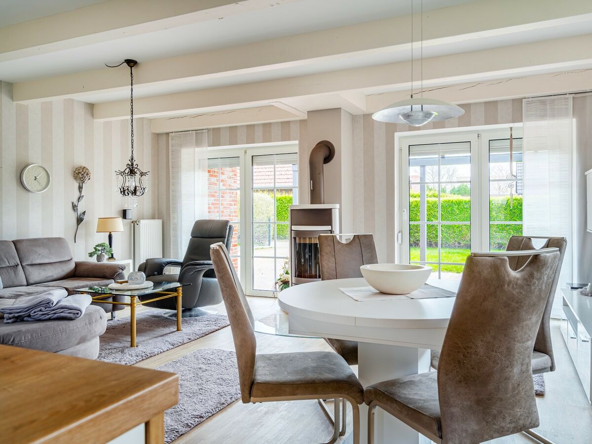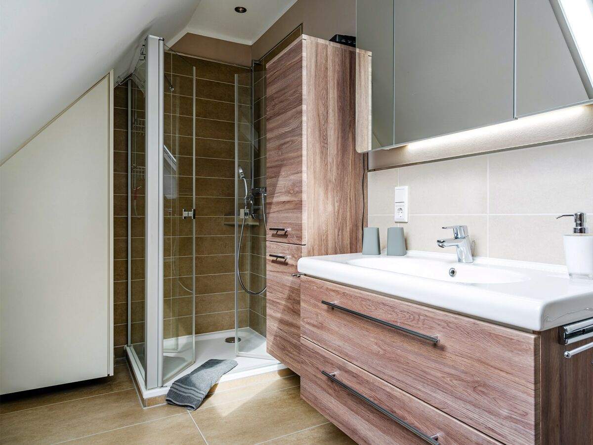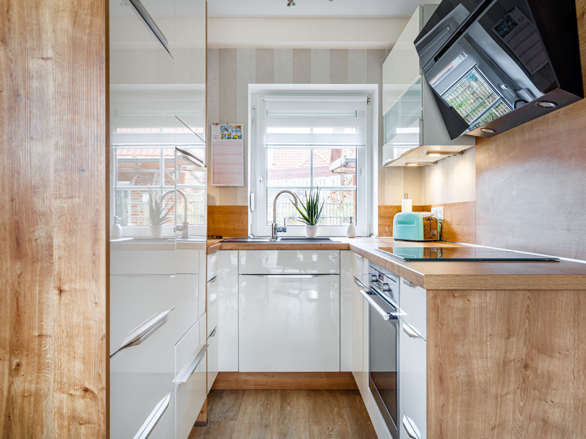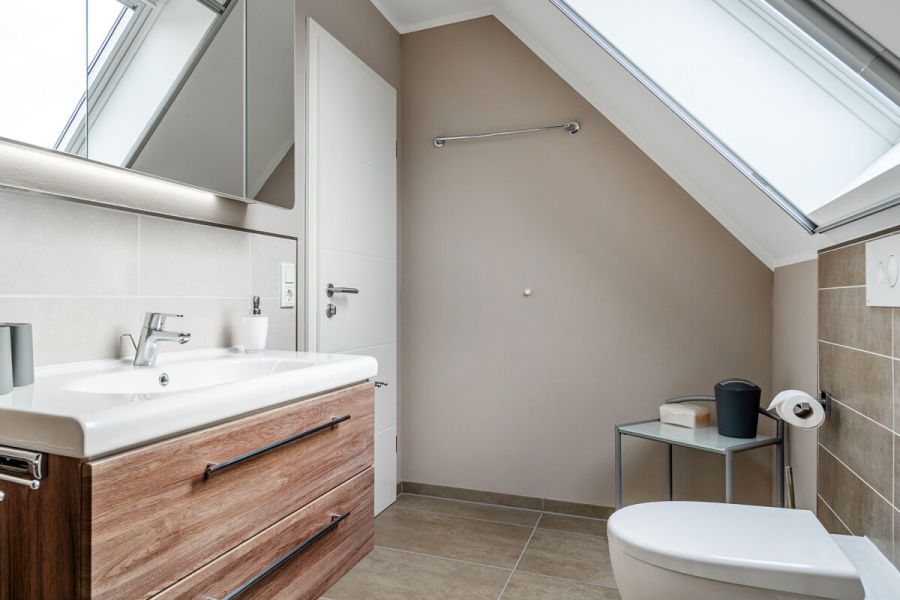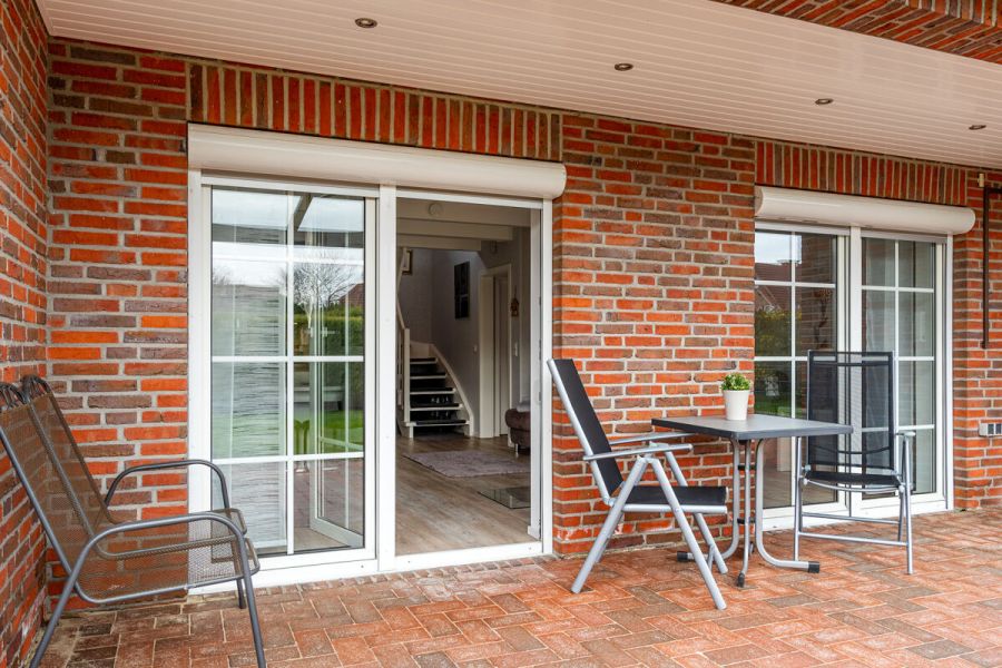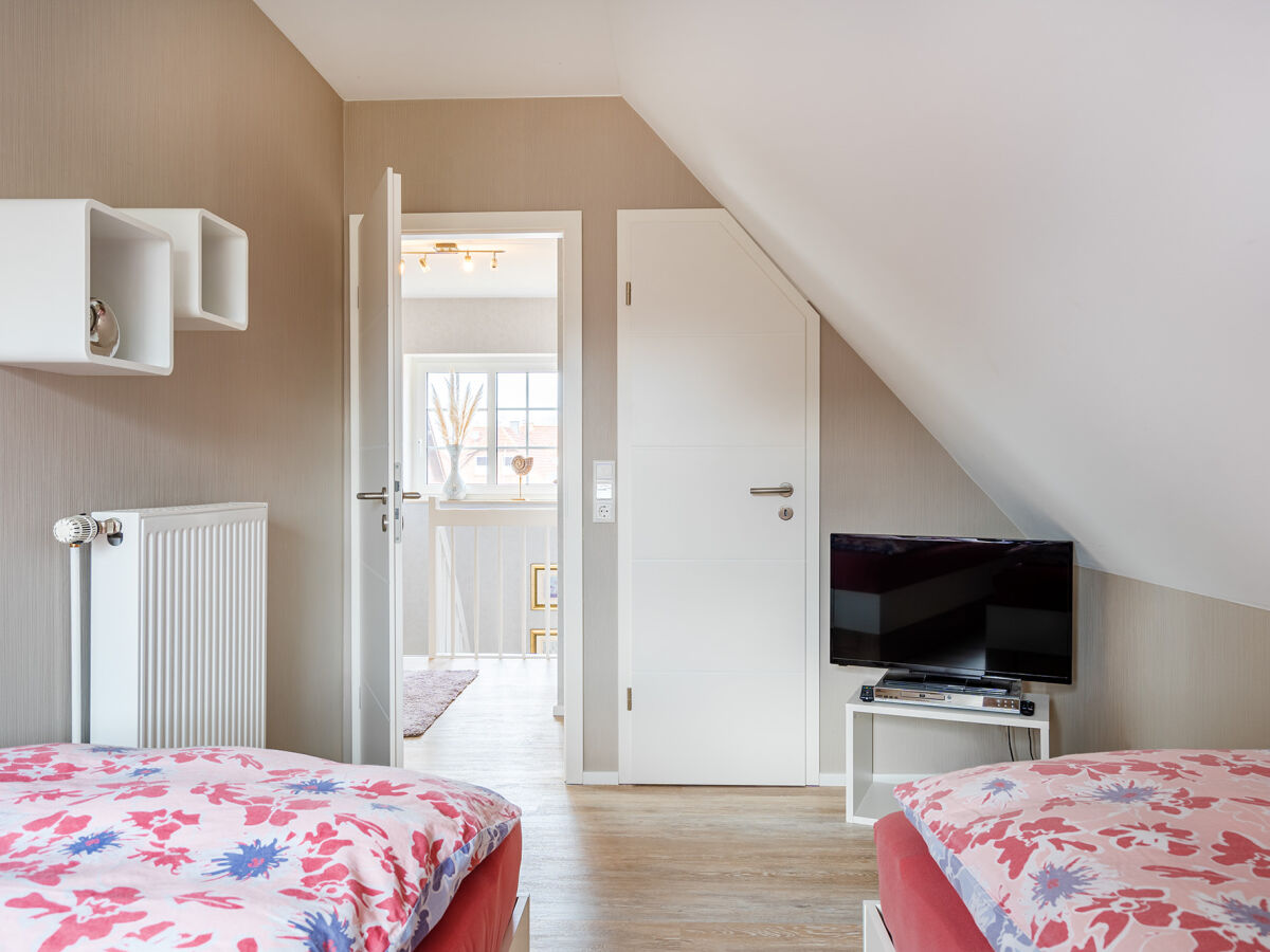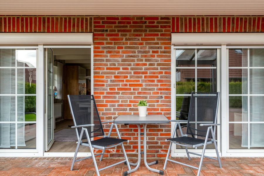 Dieses liebevoll eingerichtete und super ausgestattete Nichtraucherhaus bietet Ihnen auf ca. 80m² Wohnfläche Platz für bis zu 4 Personen mit Kleinkind. Das gesamte Haus ist mit pflegeleichtem Vinylboden ausgestattet. Der großzügige Wohn- und Essbereich mit Zugang auf die überdachte Außenterrasse und offener Küche lässt keine Wünsche offen. Abgerundet wird das Platzangebot im Erdgeschoss durch ein Gäste-WC und einem Abstellraum. Über eine Holztreppe gelangen Sie in das Obergeschoss. Hier befinden sich zwei toll eingerichtete Schlafzimmer und das moderne Badezimmer mit bodenebener Dusche. Die Schlafzimmer sind wie folgt ausgestattet: Das Elternschlafzimmer ist mit einem Doppelbett, einem Kleiderschrank und einem TV-Gerät ausgestattet. Das Kinderzimmer mit zwei Einzelbetten, einem kleinen begehbarem Kleiderschrank und ebenfalls mit einem TV-Gerät.