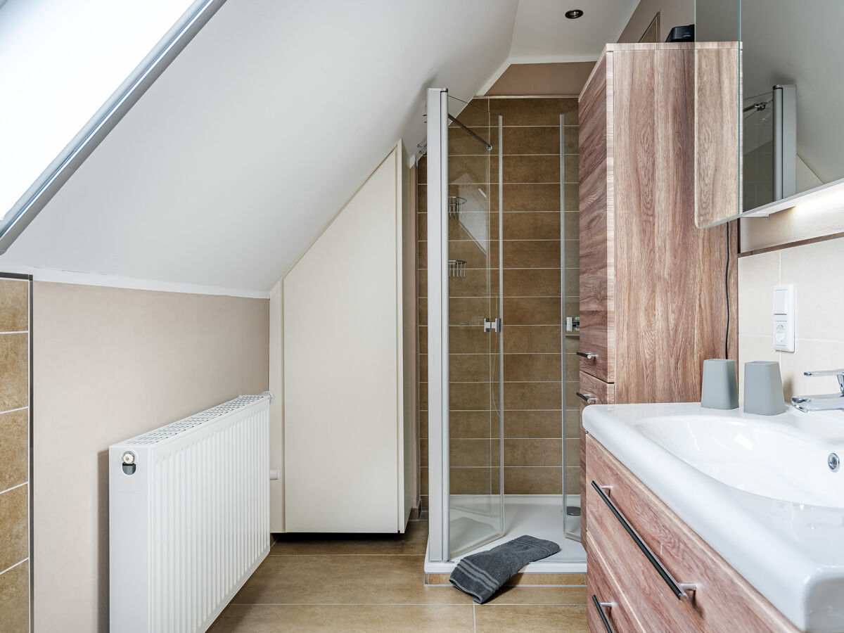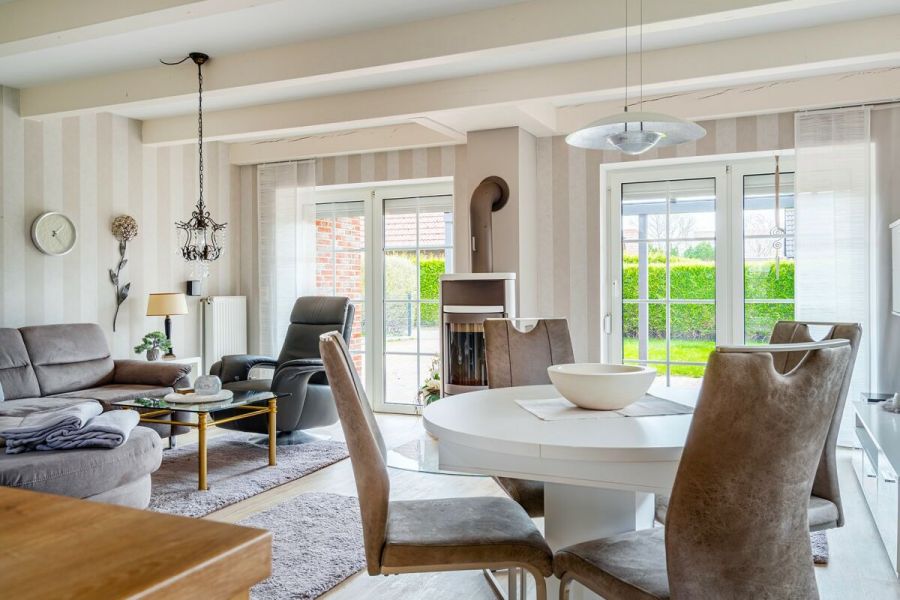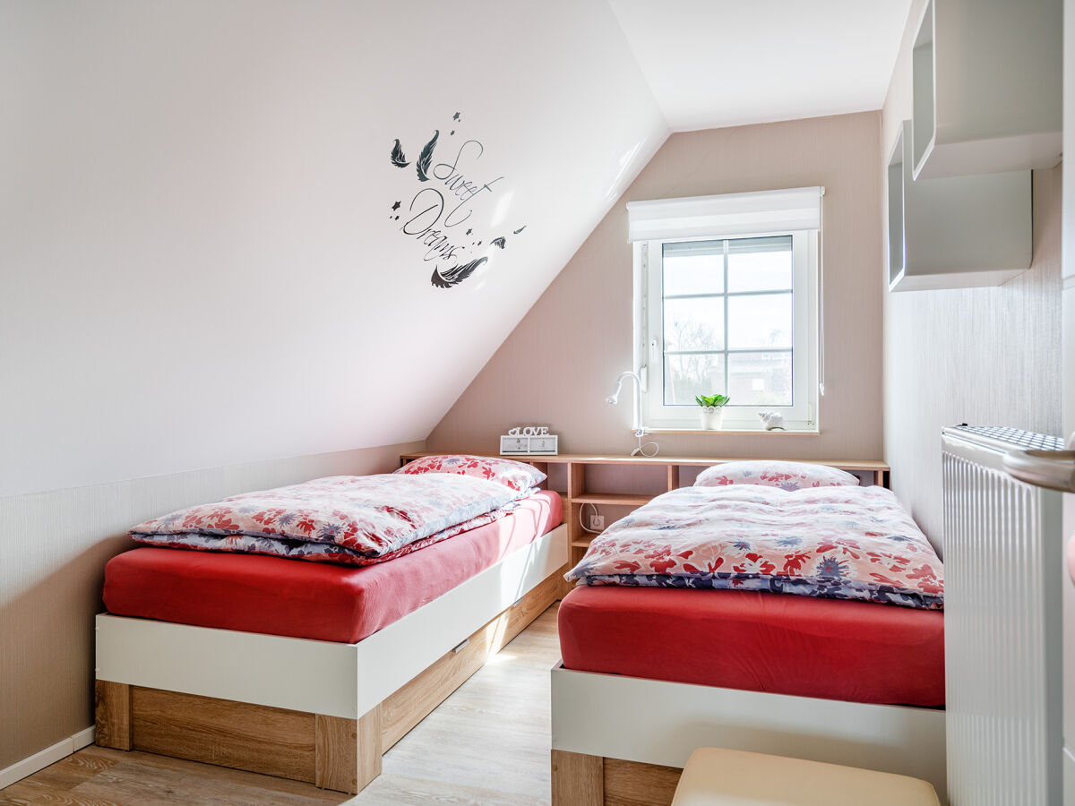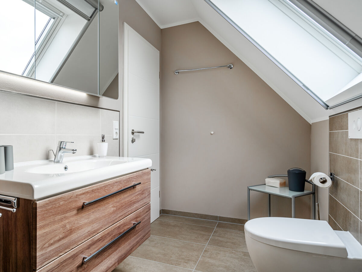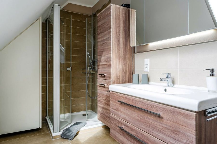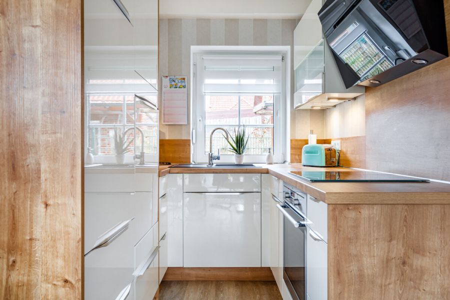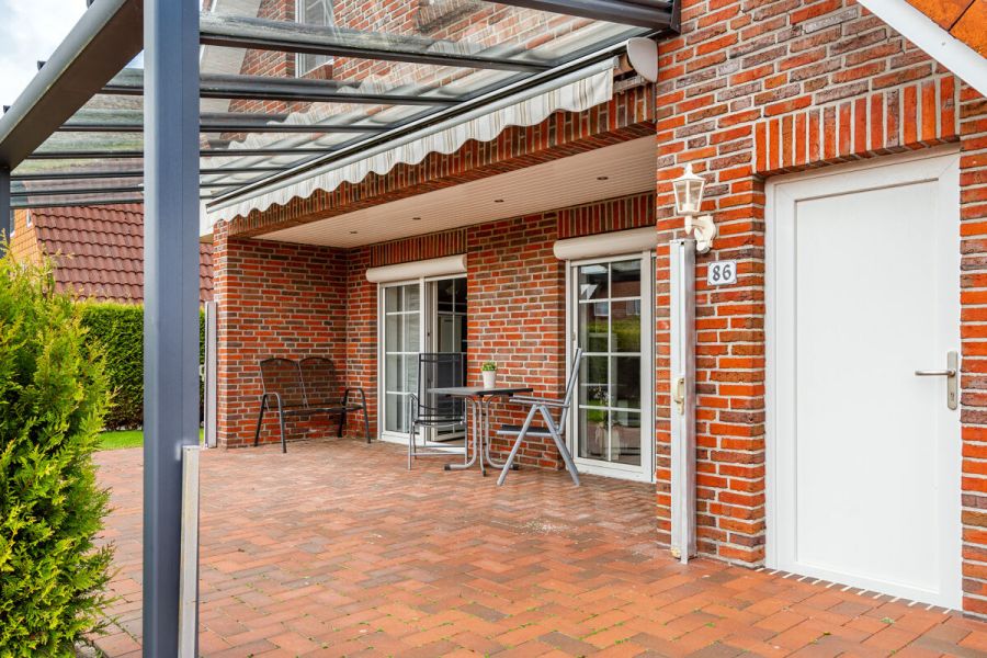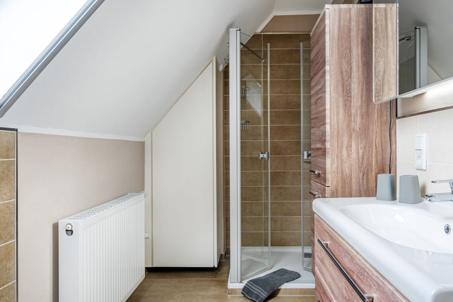 Dieses liebevoll eingerichtete und super ausgestattete Nichtraucherhaus bietet Ihnen auf ca. 80m² Wohnfläche Platz für bis zu 4 Personen mit Kleinkind. Das gesamte Haus ist mit pflegeleichtem Vinylboden ausgestattet. Der großzügige Wohn- und Essbereich mit Zugang auf die überdachte Außenterrasse und offener Küche lässt keine Wünsche offen. Abgerundet wird das Platzangebot im Erdgeschoss durch ein Gäste-WC und einem Abstellraum. Über eine Holztreppe gelangen Sie in das Obergeschoss. Hier befinden sich zwei toll eingerichtete Schlafzimmer und das moderne Badezimmer mit bodenebener Dusche. Die Schlafzimmer sind wie folgt ausgestattet: Das Elternschlafzimmer ist mit einem Doppelbett, einem Kleiderschrank und einem TV-Gerät ausgestattet. Das Kinderzimmer mit zwei Einzelbetten, einem kleinen begehbarem Kleiderschrank und ebenfalls mit einem TV-Gerät.