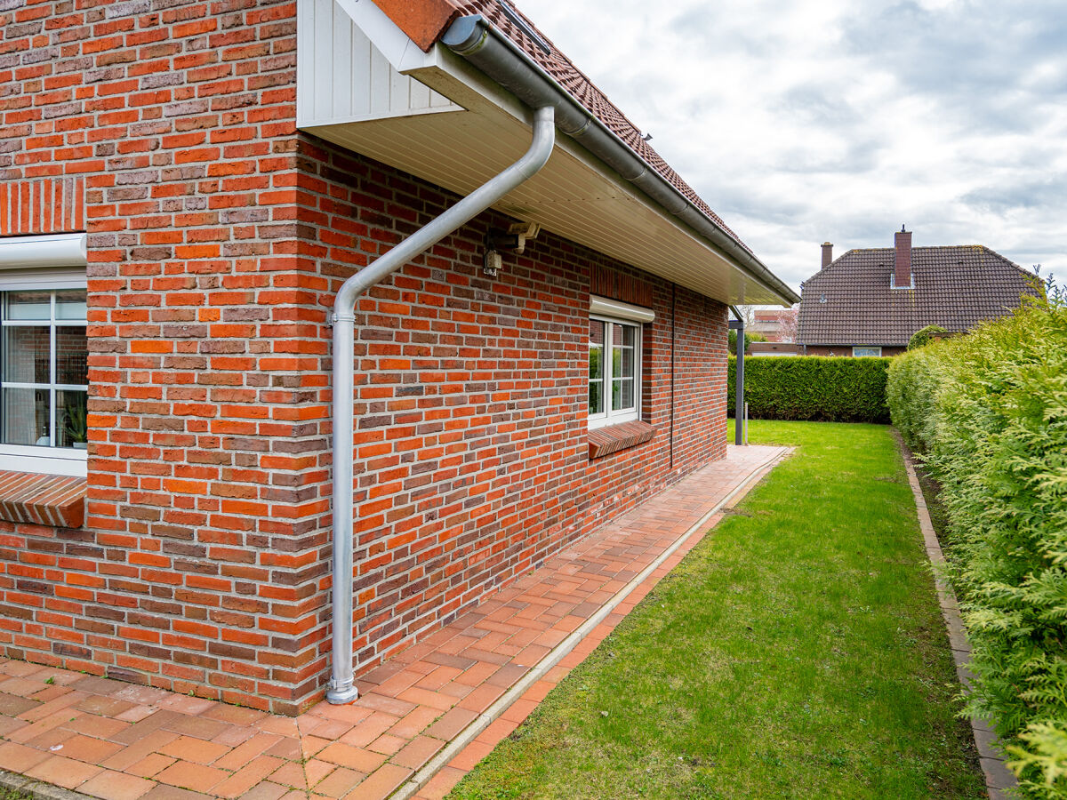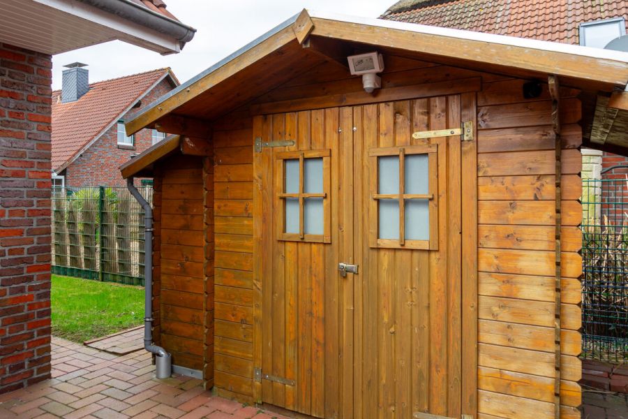 Der schön angelegte Garten mit einer überdachten Außenterrasse, einem Abstellraum für Gartenmöbel und einem Schuppen für Fahrräder runden dieses tolle Angebot ab. KFZ- Einstellplätze am Haus für zwei Fahrzeuge sind vorhanden.