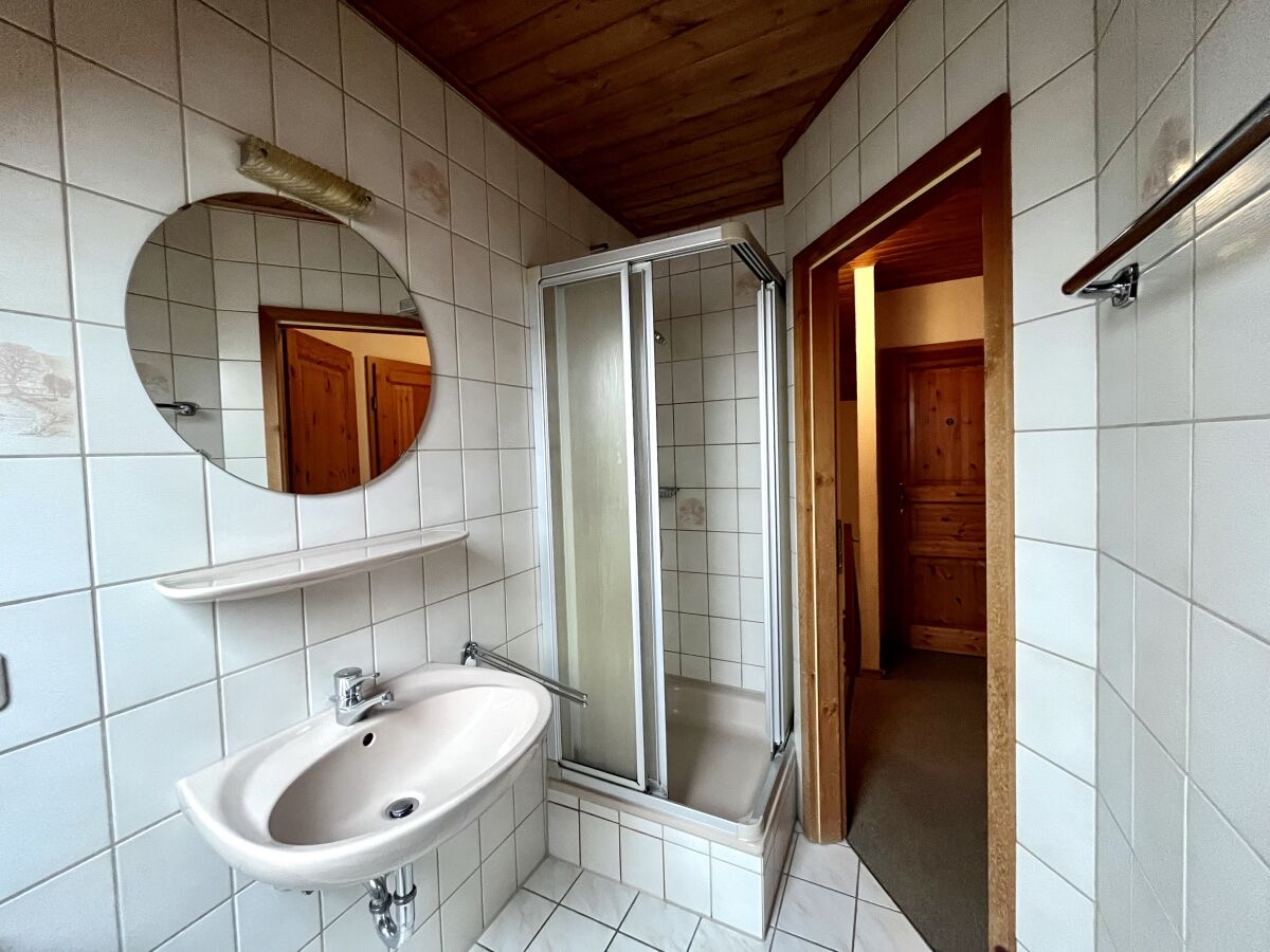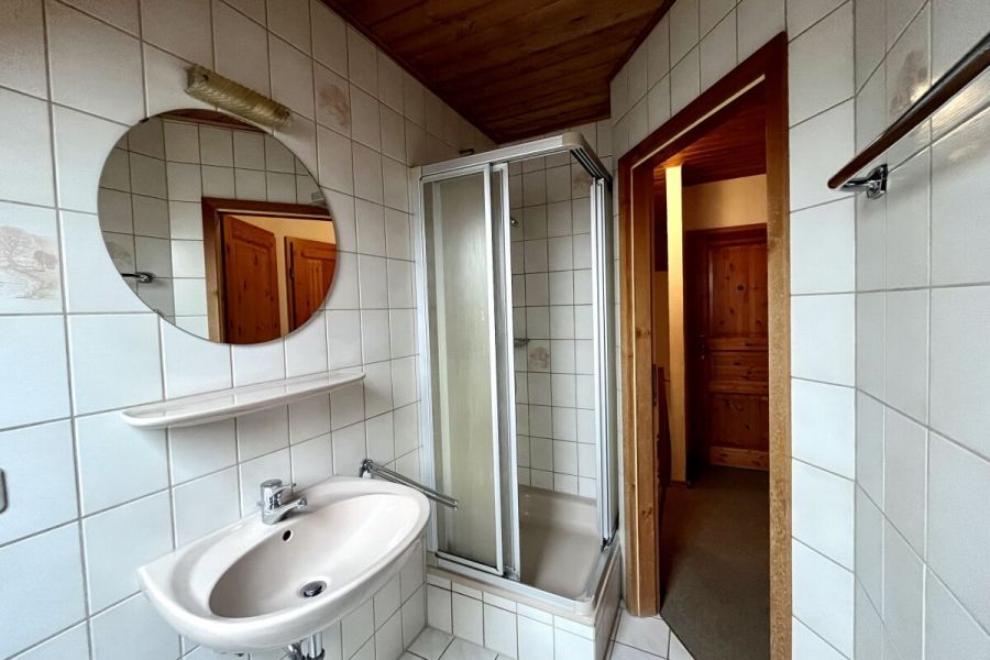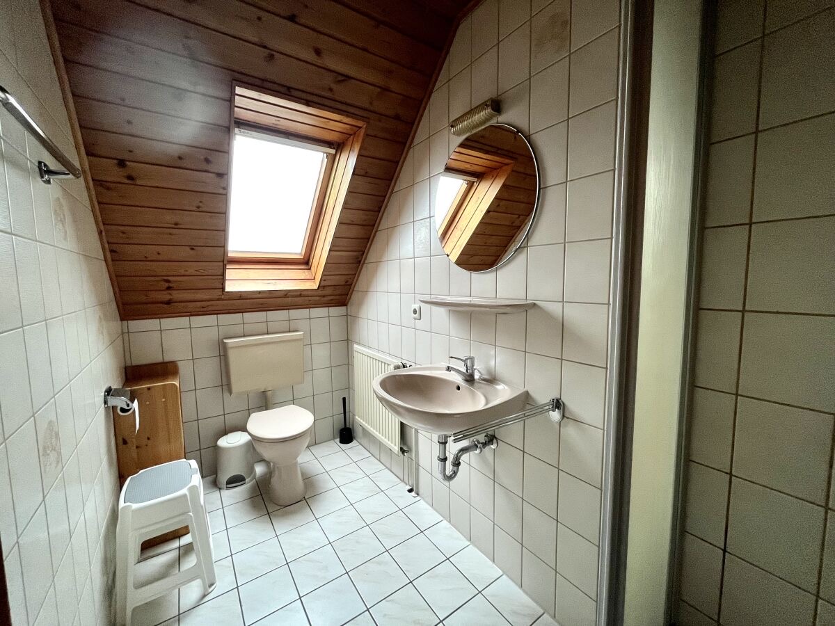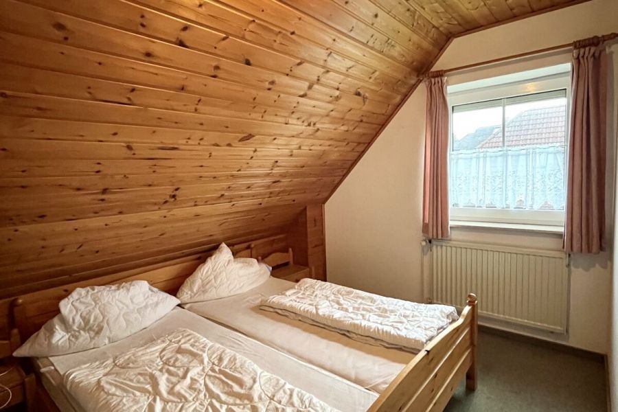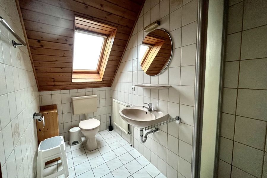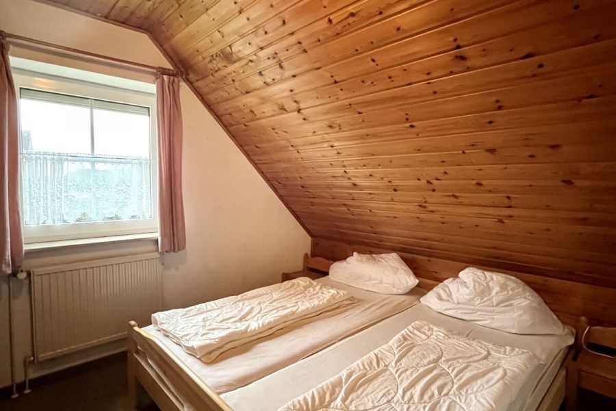 Im Obergeschoss gibt es 3 Schlafzimmer. Zwei Schlafzimmer sind mit Doppelbett und eins mit einem Etagenbett eingerichtet. Auch hier gibt es ein Badezimmer mit Dusche und WC.