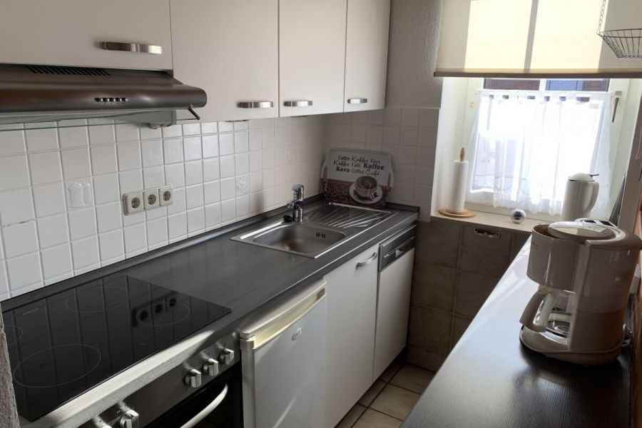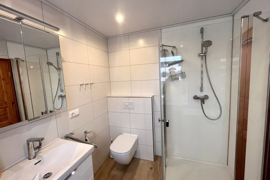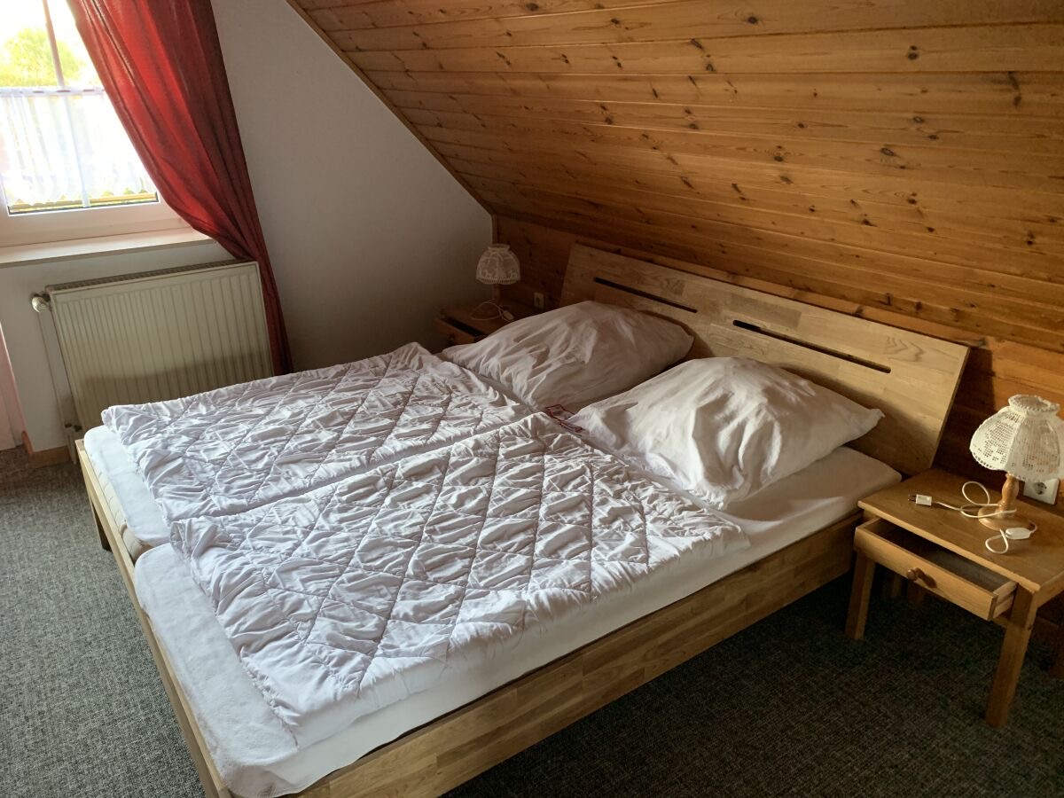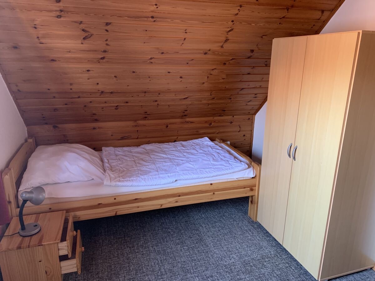 Im unteren Bereich befindet sich der Wohn-und Essbereich mit anliegender gut ausgestatteter Küchenzeile. Weiter Im Erdgeschoss befindet sich ein Badezimmer mit Dusche und Waschmaschine sowie ein Schlafzimmer mit einem Hochbett. Zwei weitere Schlafräume, eines mit Doppelbett und eines mit zwei Einzelbetten, sowie ein Kinderreisebett und ein Gäste-WC sind in der 1.Etage. Für die kalten Wintertage steht Ihnen ein Kaminofen zur Verfügung.