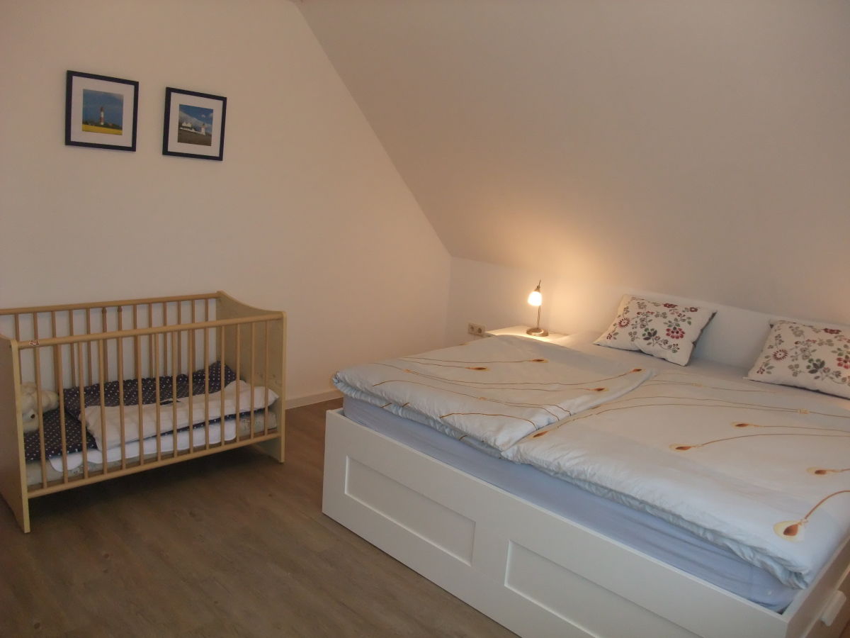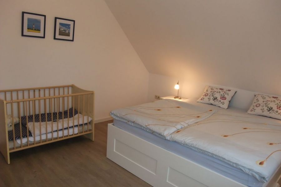 Vom Eingangsbereich gelangt man über eine robuste Holztreppe ins Obergeschoss. Dieses ist mit 3 zugänglichen Räumen ein weiterer Rückzugsort. Am Anfang befindet sich hier ein Schlafzimmer mit einem Doppelbett (180cm x 200cm) inklusive Kleiderschrank. Eine Tür weiter, bezieht das großzügige Schlafzimmer Ihre Aufmerksamkeit. Ein Doppelbett (180cm x 200cm), sowie ein Kinderbett (70cm x 140cm), aber auch ein Kleiderschrank und eine kleine Kommode, sind darin enthalten. Aufgrund des großen Platzverhältnisses, können Sie sich hier frei entfalten. Auch hier befindet ein weiteres Badezimmer. Dieses ist mit einer Toilette und einer Badewanne ausgestattet.