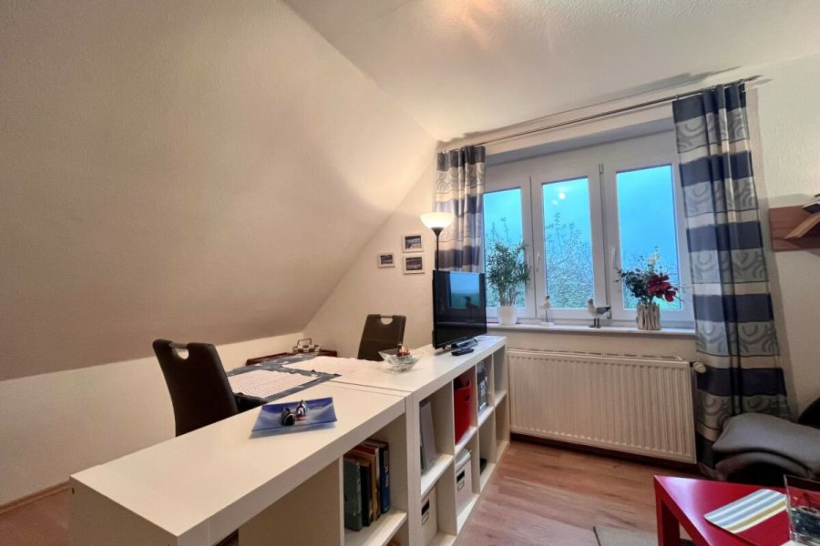 Die Ferienwohnung Backbord liegt in der ersten Etage eines Einfamilienhauses, zentral in Horumersiel und bietet bis zu 4 Personen ausreichend Platz für einen erholsamen Urlaub. Eine Sitzgruppe steht Ihnen im Vorgarten zur Verfügung. Die Ferienwohnung verfügt über ein separates Schlafzimmer mit Doppelbett und Schminktisch. Zusätzlich gibt es hier ein Kinderbett. Das Badezimmer wurde komplett saniert und verfügt über Fußbodenheizung, Dusche und WC. Eine eigene Waschmaschine in der Wohnung steht Ihnen kostenfrei zur Verfügung. Das Wohnzimmer verfügt über TV mit DVD-Player, eine Stereoanlage, kostenfreier W-LAN-Anschluss, sowie eine integrierte, sehr gut ausgestattete Küche (Backofen, Geschirrspülmaschine, Mikrowelle, Kühlschrank mit Gefrierfach). Die Ferienwohnung ist hell und modern eingerichtet. Die Fenster verfügen über Außenrollos. Im Außenbereich befindet sich ein kleiner Fitnessraum mit hochwertigen Geräten und eine Infrarotsauna. Ein TV-Gerät und WLAN ist ebenfalls vorhanden und steht Ihnen kostenlos zur Verfügung. Zum Strand und in den Ort gelangen Sie in nur wenige Minuten zu Fuß. Ein Parkplatz befindet sich direkt vor dem Haus. Haustiere sind nicht gestattet!