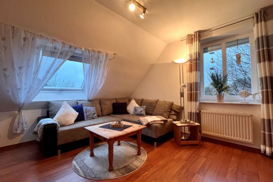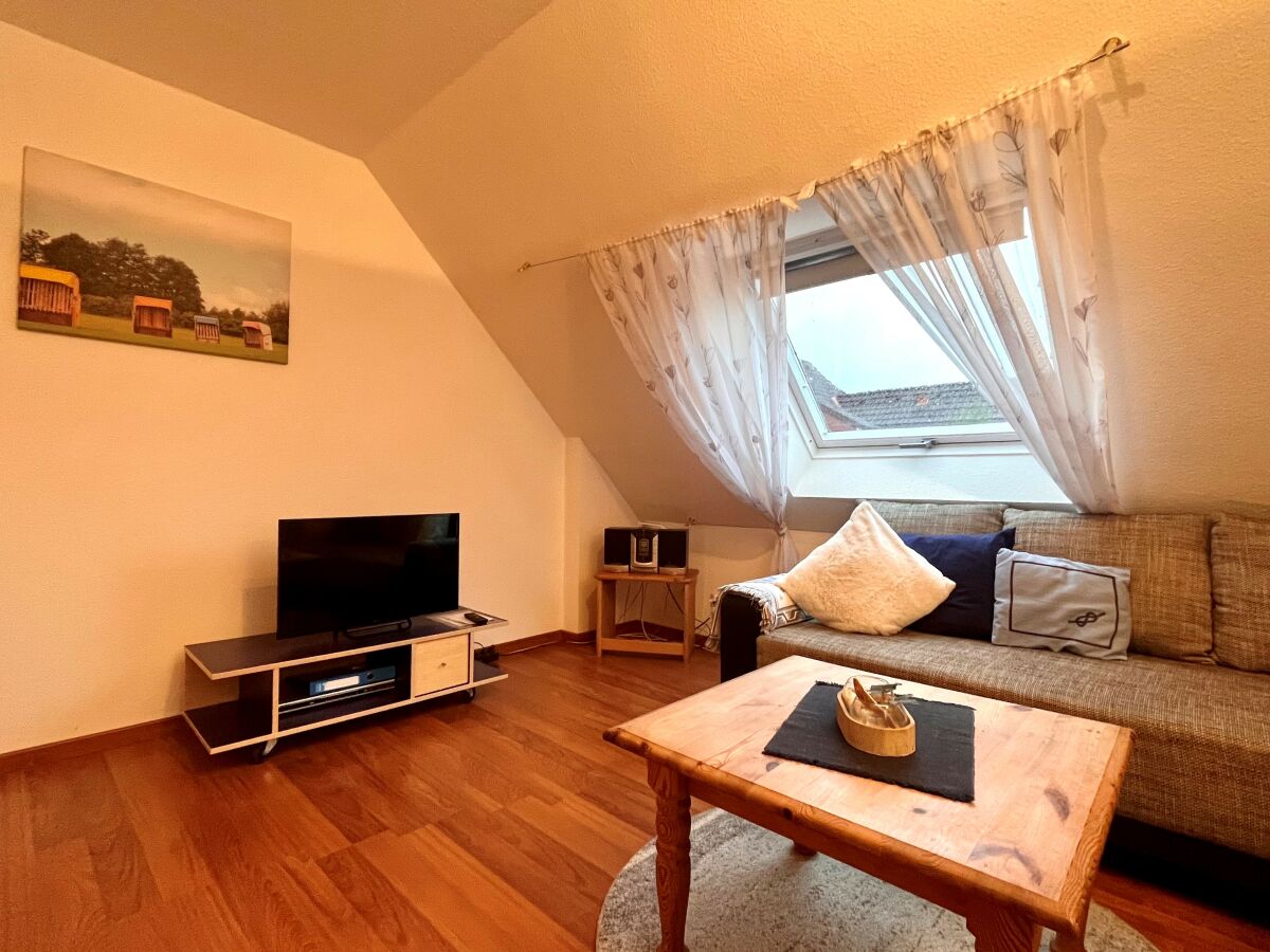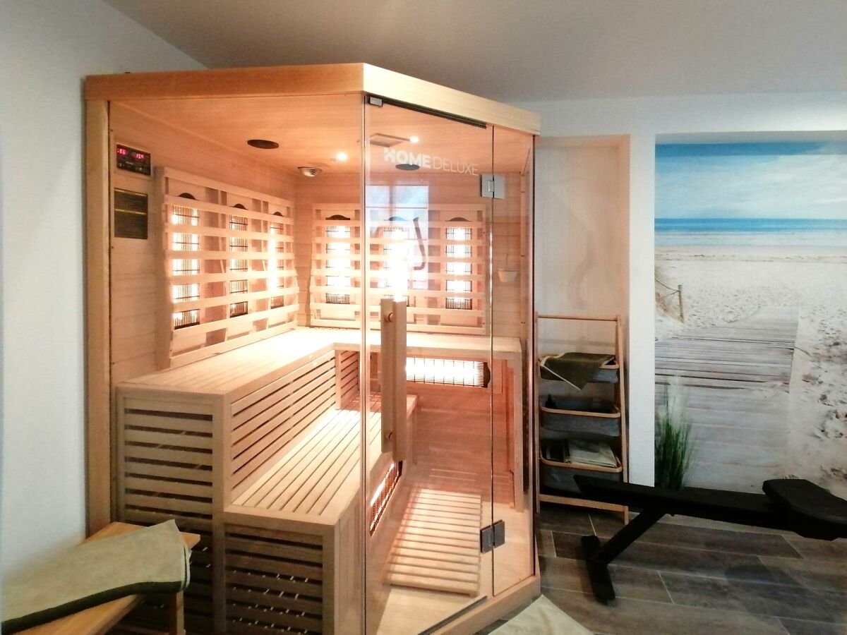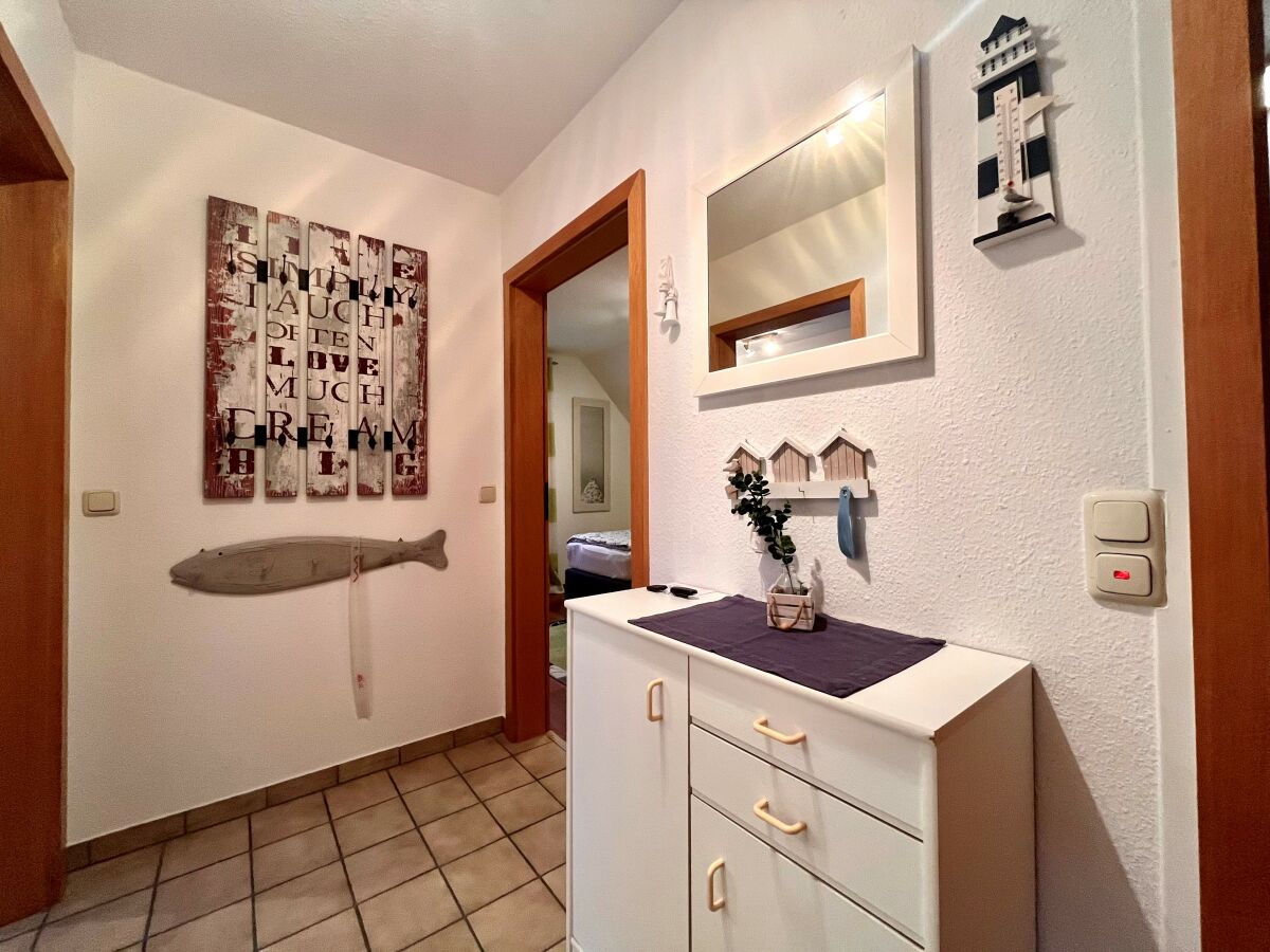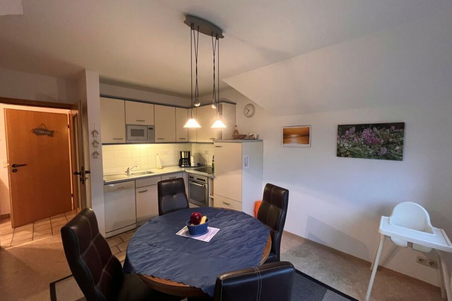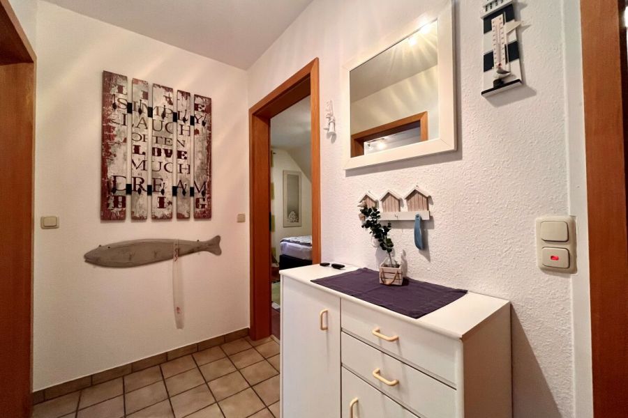 Die ruhig gelegene Ferienwohnung in der ersten Etage eines Zweifamilienhauses hat einen abgeschirmten Sitzplatz im Garten. Die Wohnung, besteht aus einer Wohnküche, einem Wohnzimmer, sowie einem separatem Schlafzimmer mit komfortablem Boxspringbett und einem Badezimmer, dass im Frühjahr 2018 komplett saniert und mit Fußbodenheizung ausgestattet wurde. Zusätzlich steht Ihnen ein Kinderbett zur Verfügung. Die gesamte Wohnung ist hell, freundlich und mit Liebe zum Detail eingerichtet! Die Couch im Wohnzimmer lässt sich ausziehen und bietet zusätzlich für 2 Personen einen Schlafplatz. Im Außenbereich befindet sich ein kleiner Fitnessraum mit hochwertigen Geräten und eine Infrarotsauna. Ein TV-Gerät und WLAN sind ebenfalls vorhanden und steht Ihnen kostenlos zur Verfügung. Zum Strand und ins Dorf sind es nur wenige Minuten zu Fuß.