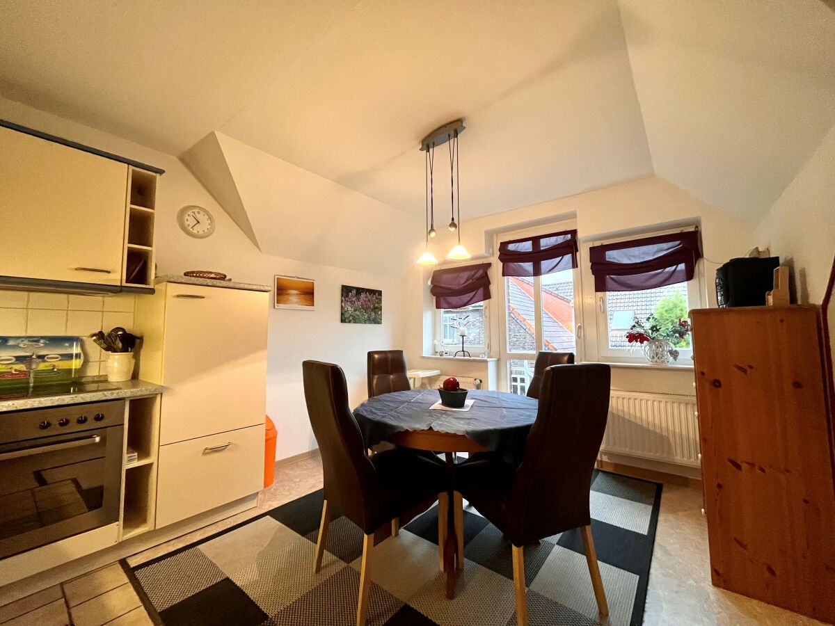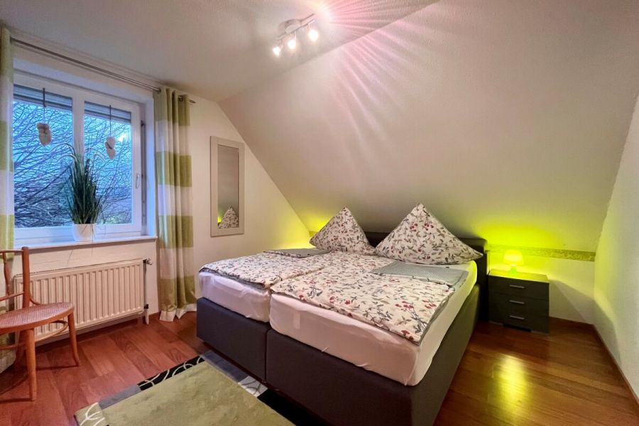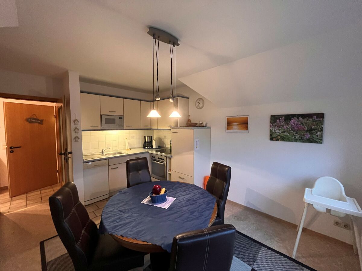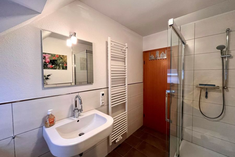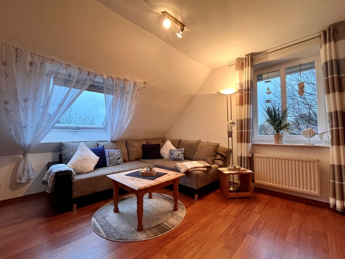 Die ruhig gelegene Ferienwohnung in der ersten Etage eines Zweifamilienhauses hat einen abgeschirmten Sitzplatz im Garten. Die Wohnung, besteht aus einer Wohnküche, einem Wohnzimmer, sowie einem separatem Schlafzimmer mit komfortablem Boxspringbett und einem Badezimmer, dass im Frühjahr 2018 komplett saniert und mit Fußbodenheizung ausgestattet wurde. Zusätzlich steht Ihnen ein Kinderbett zur Verfügung. Die gesamte Wohnung ist hell, freundlich und mit Liebe zum Detail eingerichtet! Die Couch im Wohnzimmer lässt sich ausziehen und bietet zusätzlich für 2 Personen einen Schlafplatz. Im Außenbereich befindet sich ein kleiner Fitnessraum mit hochwertigen Geräten und eine Infrarotsauna. Ein TV-Gerät und WLAN sind ebenfalls vorhanden und steht Ihnen kostenlos zur Verfügung. Zum Strand und ins Dorf sind es nur wenige Minuten zu Fuß.