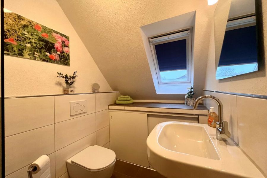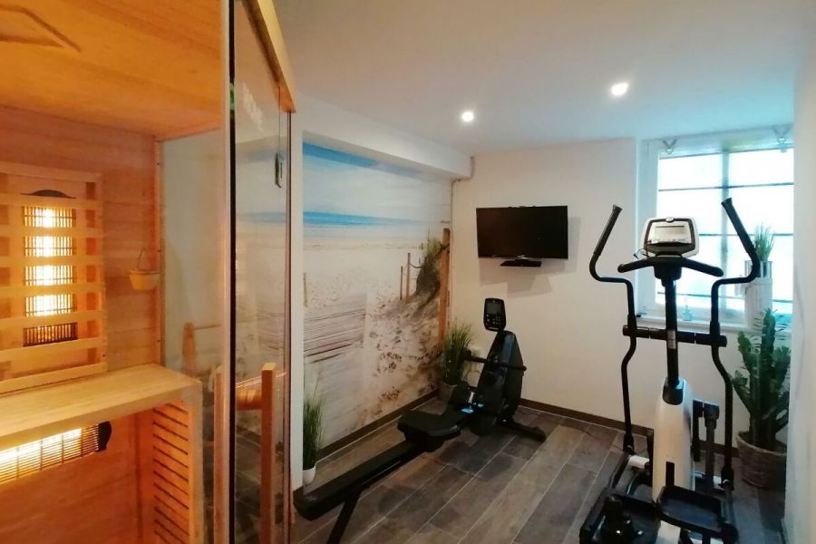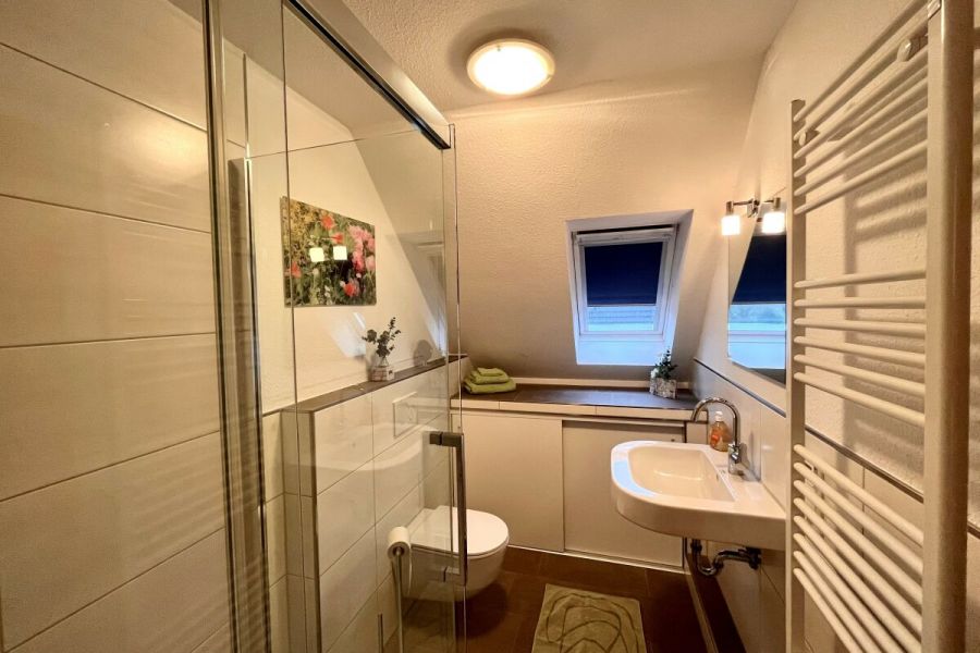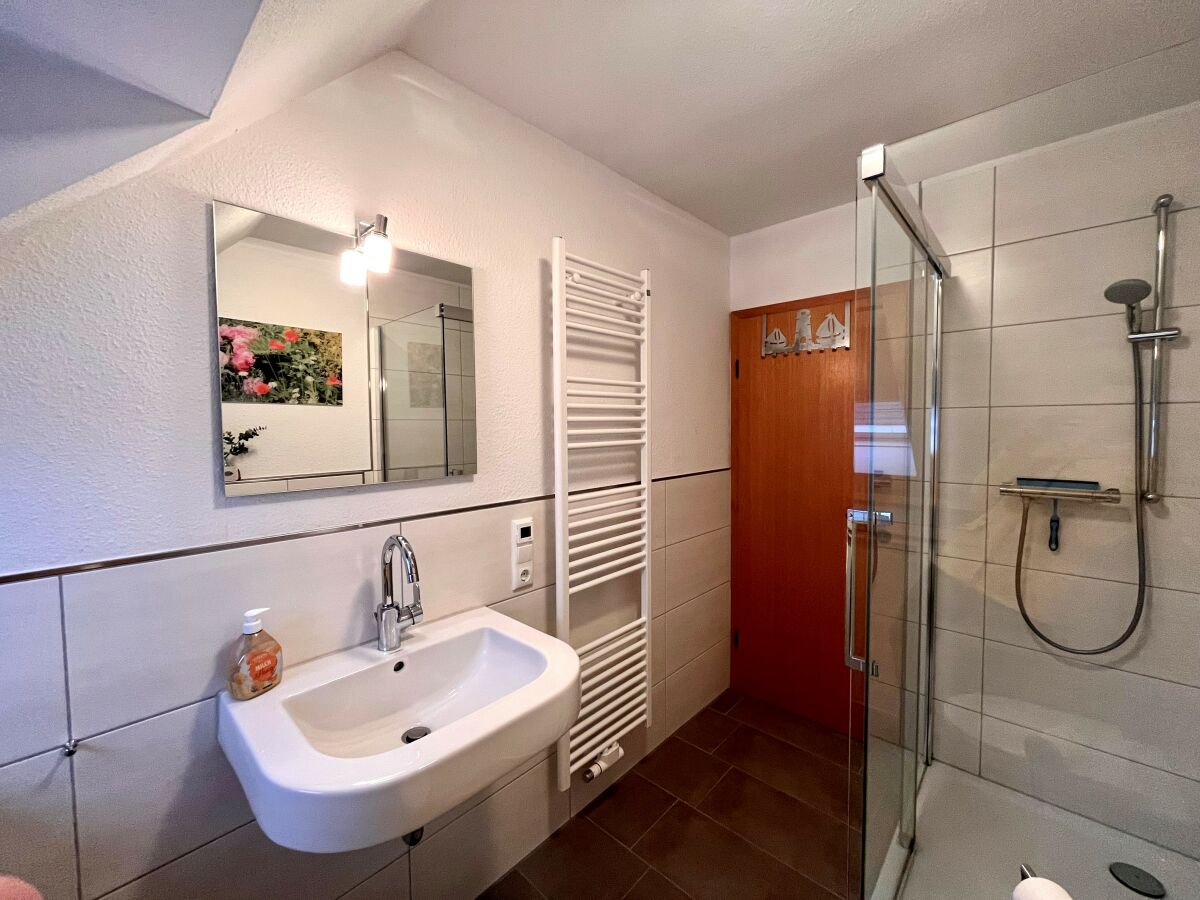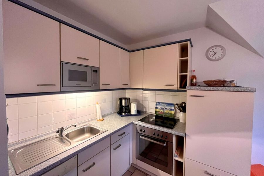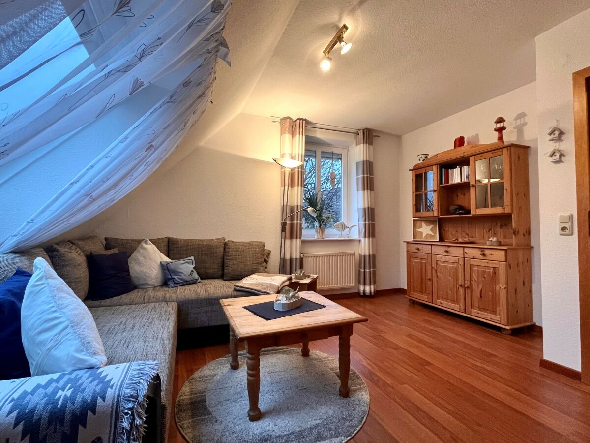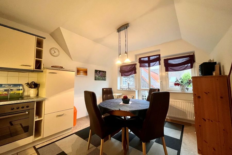 Die ruhig gelegene Ferienwohnung in der ersten Etage eines Zweifamilienhauses hat einen abgeschirmten Sitzplatz im Garten. Die Wohnung, besteht aus einer Wohnküche, einem Wohnzimmer, sowie einem separatem Schlafzimmer mit komfortablem Boxspringbett und einem Badezimmer, dass im Frühjahr 2018 komplett saniert und mit Fußbodenheizung ausgestattet wurde. Zusätzlich steht Ihnen ein Kinderbett zur Verfügung. Die gesamte Wohnung ist hell, freundlich und mit Liebe zum Detail eingerichtet! Die Couch im Wohnzimmer lässt sich ausziehen und bietet zusätzlich für 2 Personen einen Schlafplatz. Im Außenbereich befindet sich ein kleiner Fitnessraum mit hochwertigen Geräten und eine Infrarotsauna. Ein TV-Gerät und WLAN sind ebenfalls vorhanden und steht Ihnen kostenlos zur Verfügung. Zum Strand und ins Dorf sind es nur wenige Minuten zu Fuß.